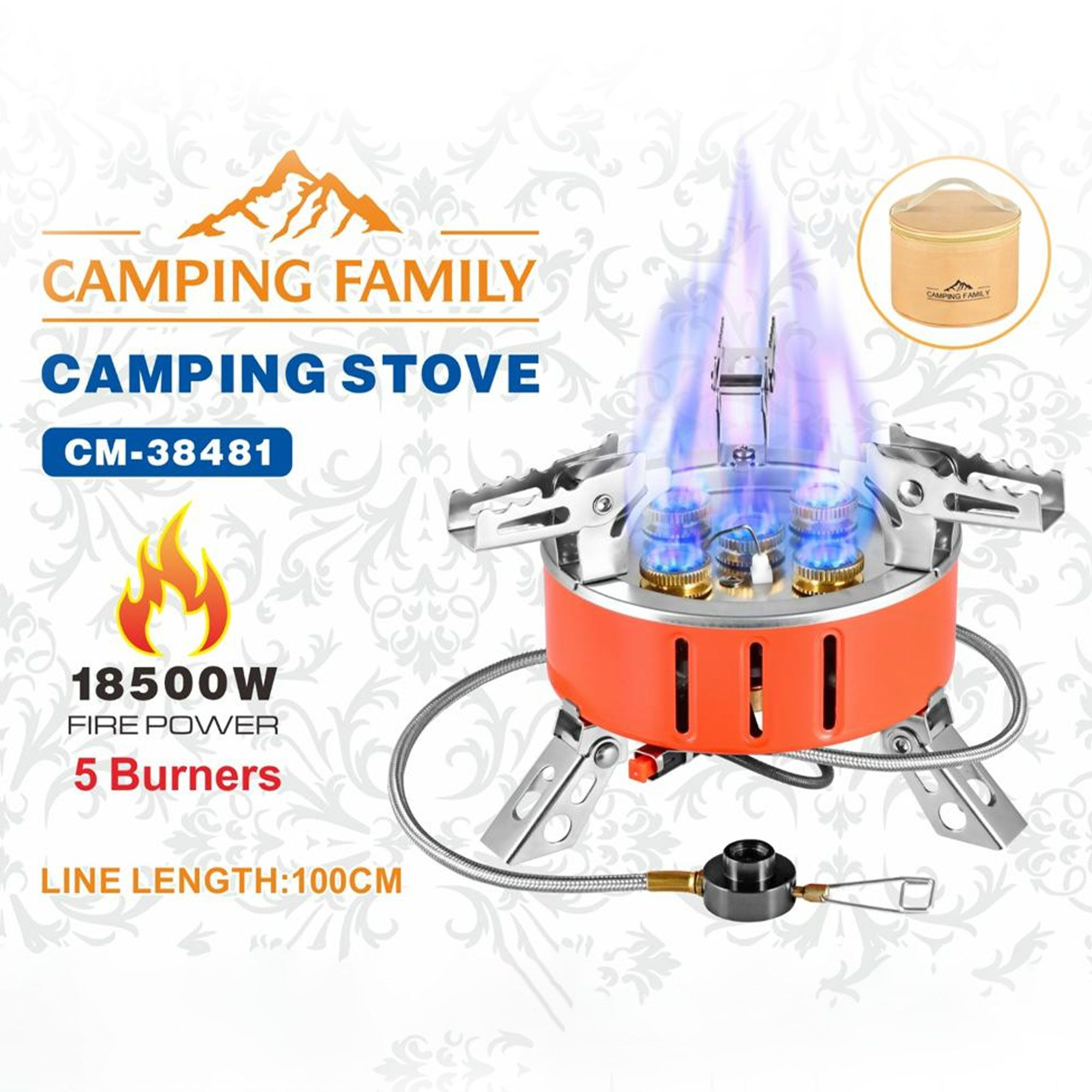 موقد غاز 5 عين للتخييم بضمان عامين