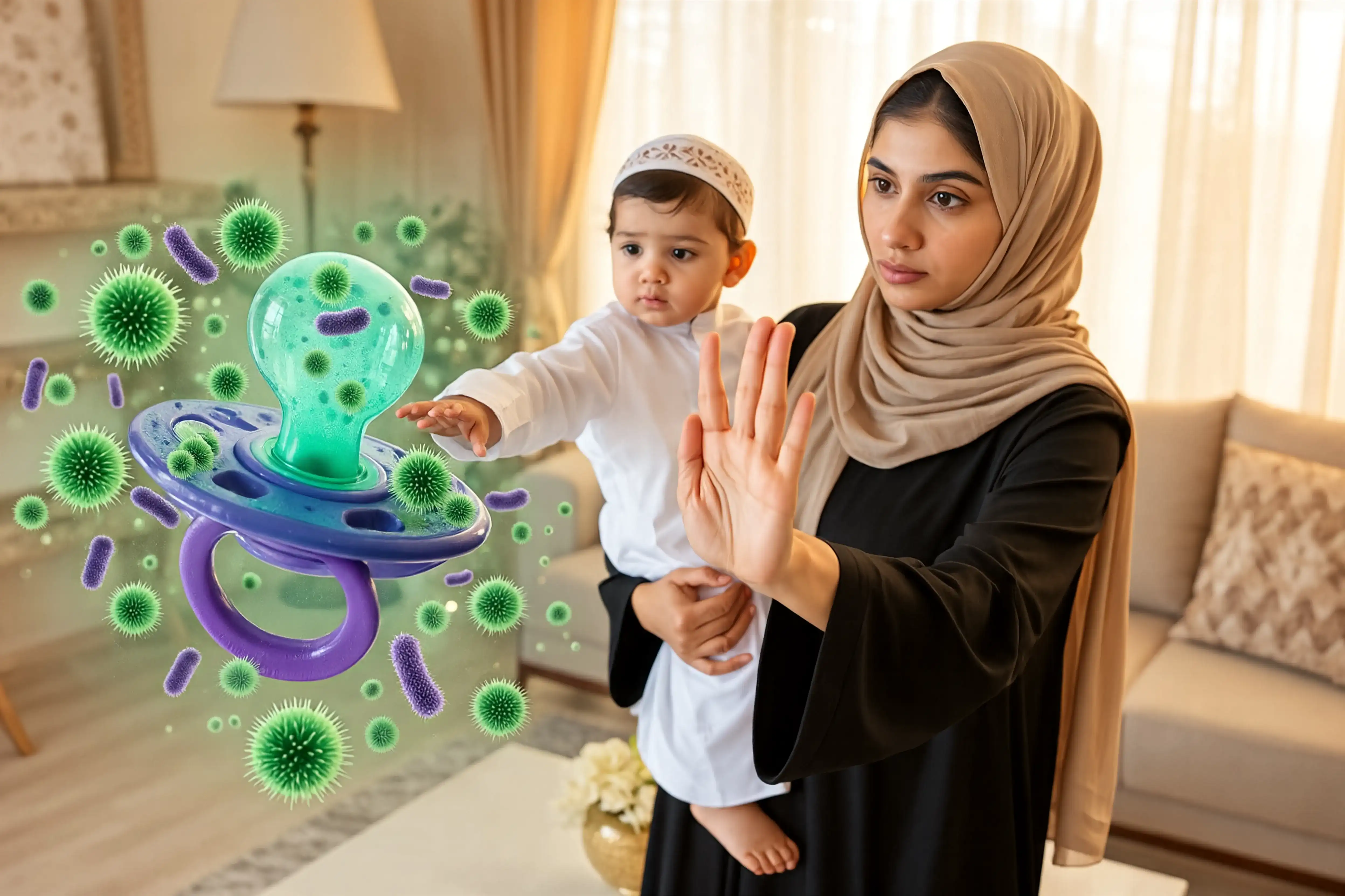 اللهاية هي أكثر شي يلامس فم طفلك طول اليوم، و أي جرثومة عليها تدخل مباشرة جسمه الصغير وتعرّضه للخطر